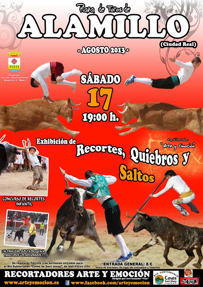 Recortes, quiebros y saltos deleitarán el próximo sábado 17 de agosto a los vecinos de Alamillo (Ciudad Real). El grupo de recortadores Arte y Emoción hará las delicias del respetable con una actuación que comenzará a las 19.00 horas.